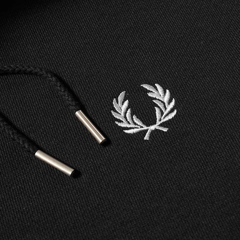 Una sudadera con capucha confeccionada en bouclé de algodón y poliéster, rematada con nuestro ribete con dos franjas en los puños. Cuenta la leyenda que un cliente de Lillywhites pidió personalizar un polo liso de Fred Perry con los colores de su equipo de fútbol y así nació nuestro ribete con dos franjas. Este elemento forma parte de nuestro ADN, ya que solo nosotros lo usamos en la proporción de grosor 5-4-4. Nuestra sudadera con capucha, diseñada con nuestros inconfundibles detalles, presenta el ribete con dos franjas y la corona de laurel bordada en un color a juego.
