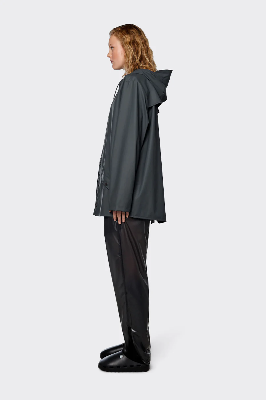 Esta chaqueta impermeable, confeccionada en el PU característico de Rains, presenta costuras soldadas por ultrasonidos. Se completa con un acabado ligero, un tacto suave y un elegante drapeado.